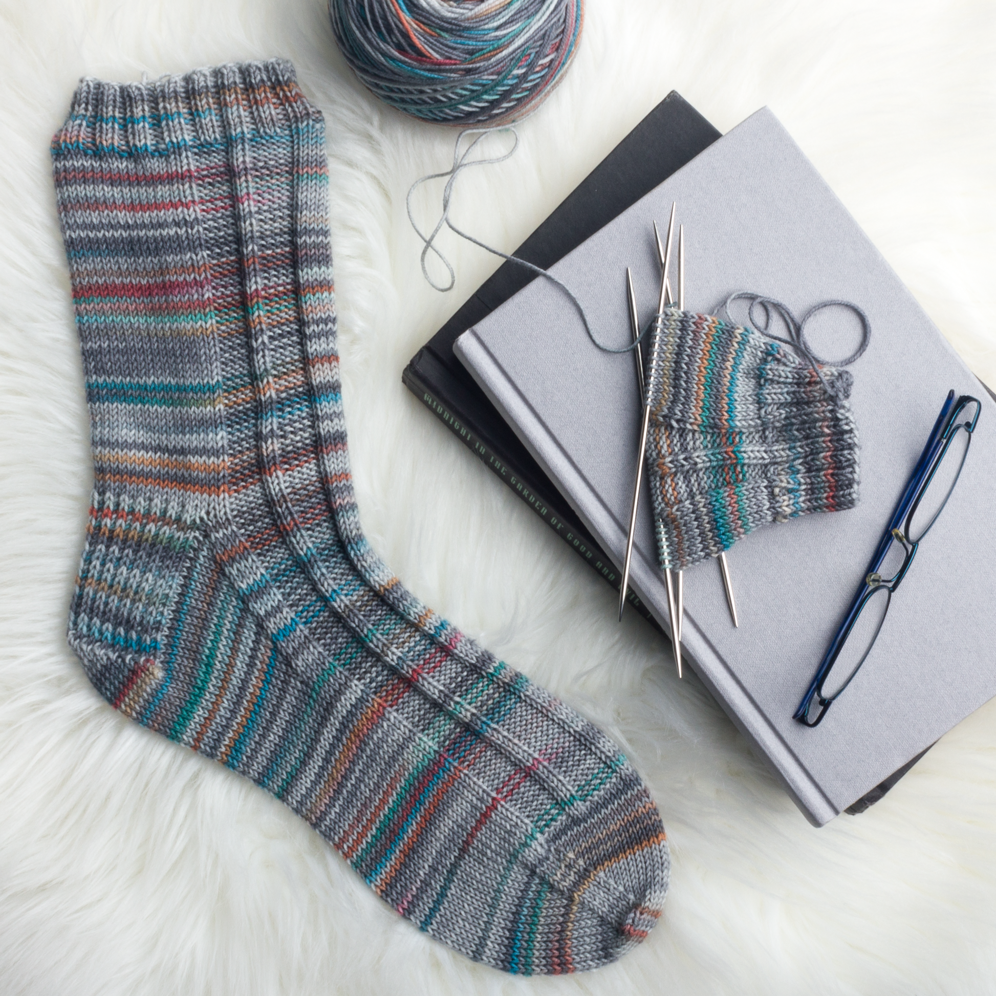 Round Trip "There and back" with two matching halves—perfect for projects like socks. One 100 g skein of fingering weight is enough for an average-size pair of women's socks. For longer or wider socks, choose the 150 g size.
