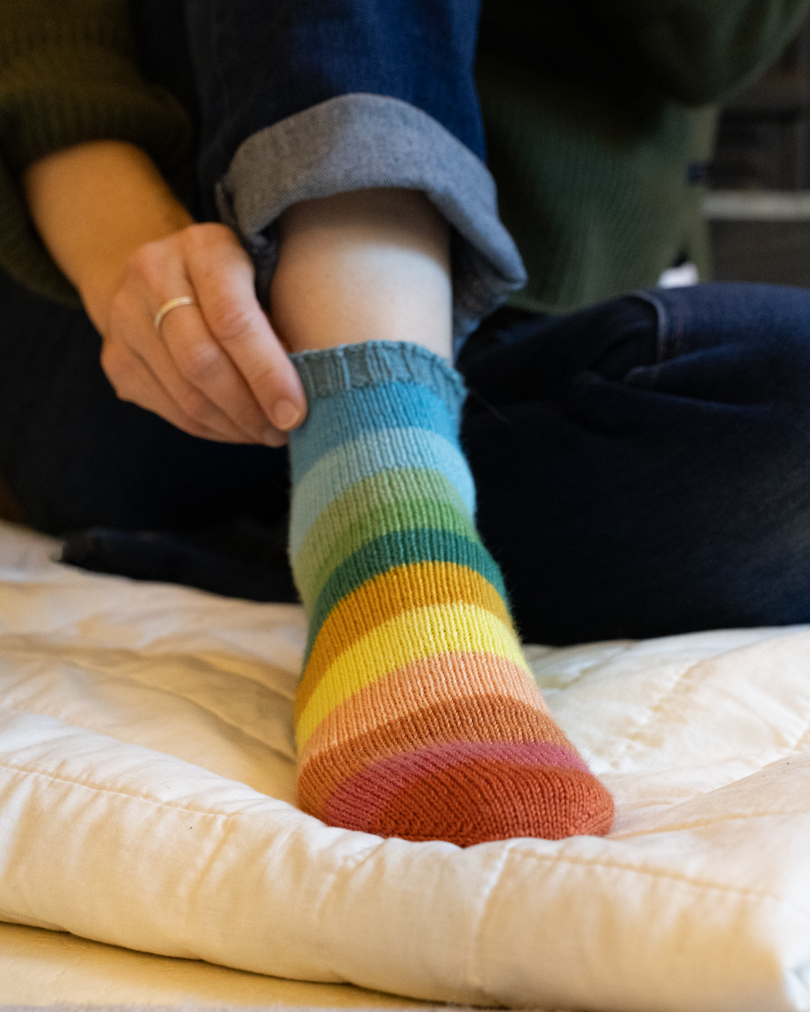 We have two striping patterns depending on what project you want to work on: Round Trip for socks, One Way Trip for a hat. This listing is for Round Trip.