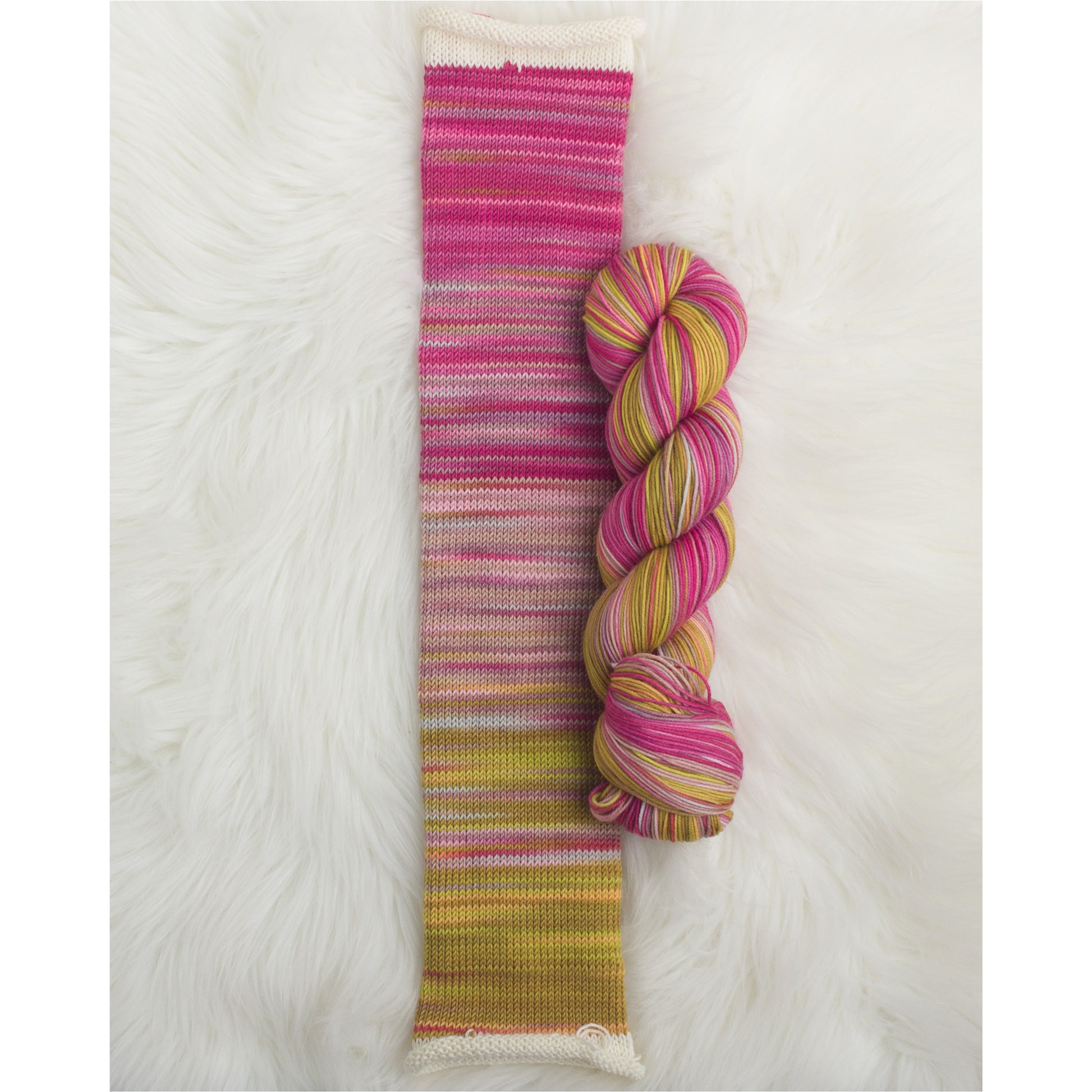 Shawl Yarn Specially dyed for top-down triangular shawls. Each stripe is the same width from beginning to end, with no ends to weave in. 100 g of fingering weight is enough for a small shawlette. 150 g gives a more generous size. If you want to maximize your yardage, choose our 4-Ply sock yarn.