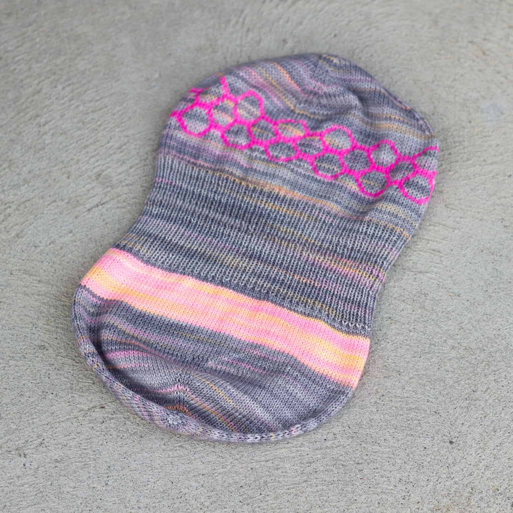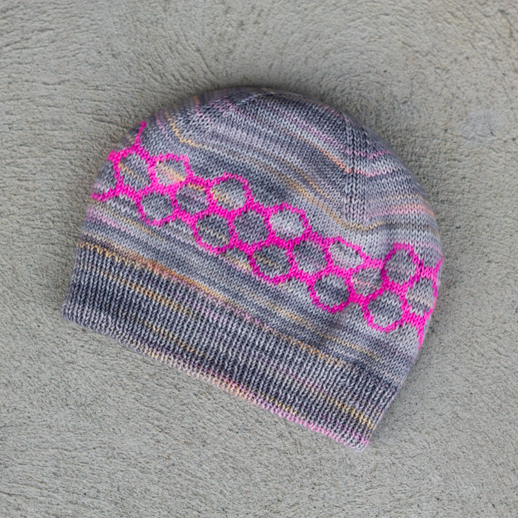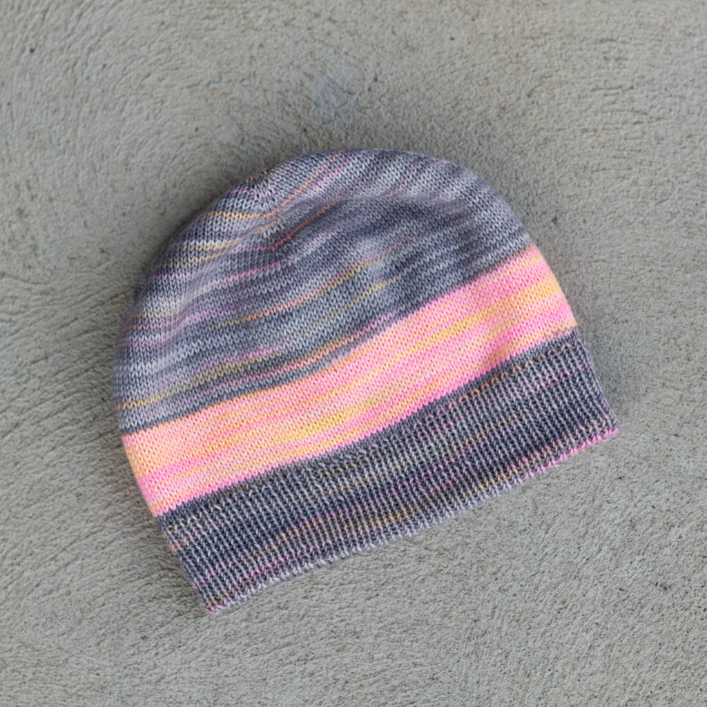 A single 115 g / 4 oz skein of this self-patterning yarn is all you need to make this clever, reversible hat.