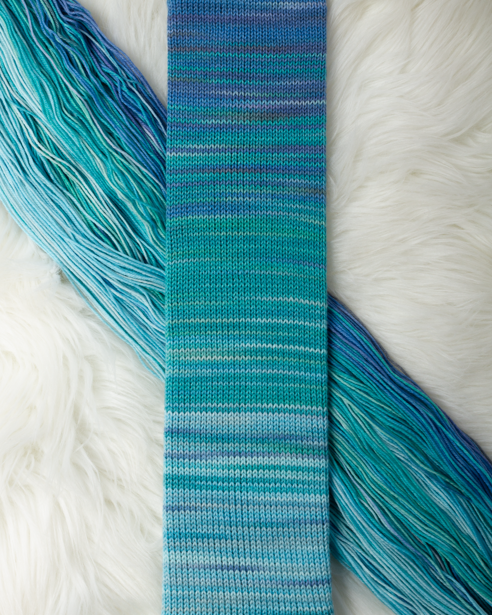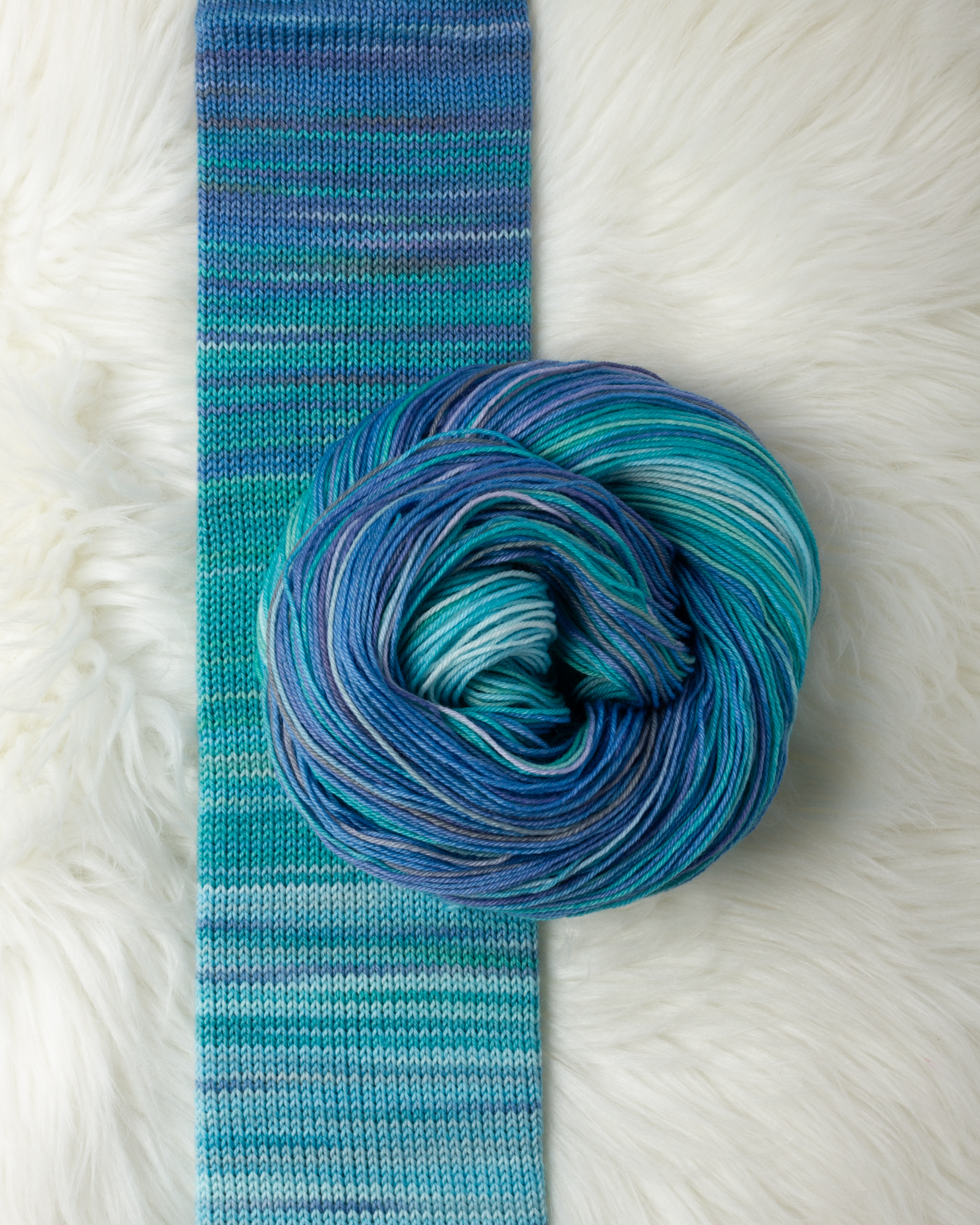 Shawl Yarn Specially dyed for top-down triangular shawls. Each stripe is the same width from beginning to end, with no ends to weave in. 100 g of fingering weight is enough for a small shawlette. 150 g gives a more generous size. If you want to maximize your yardage, choose our 4-Ply sock yarn.