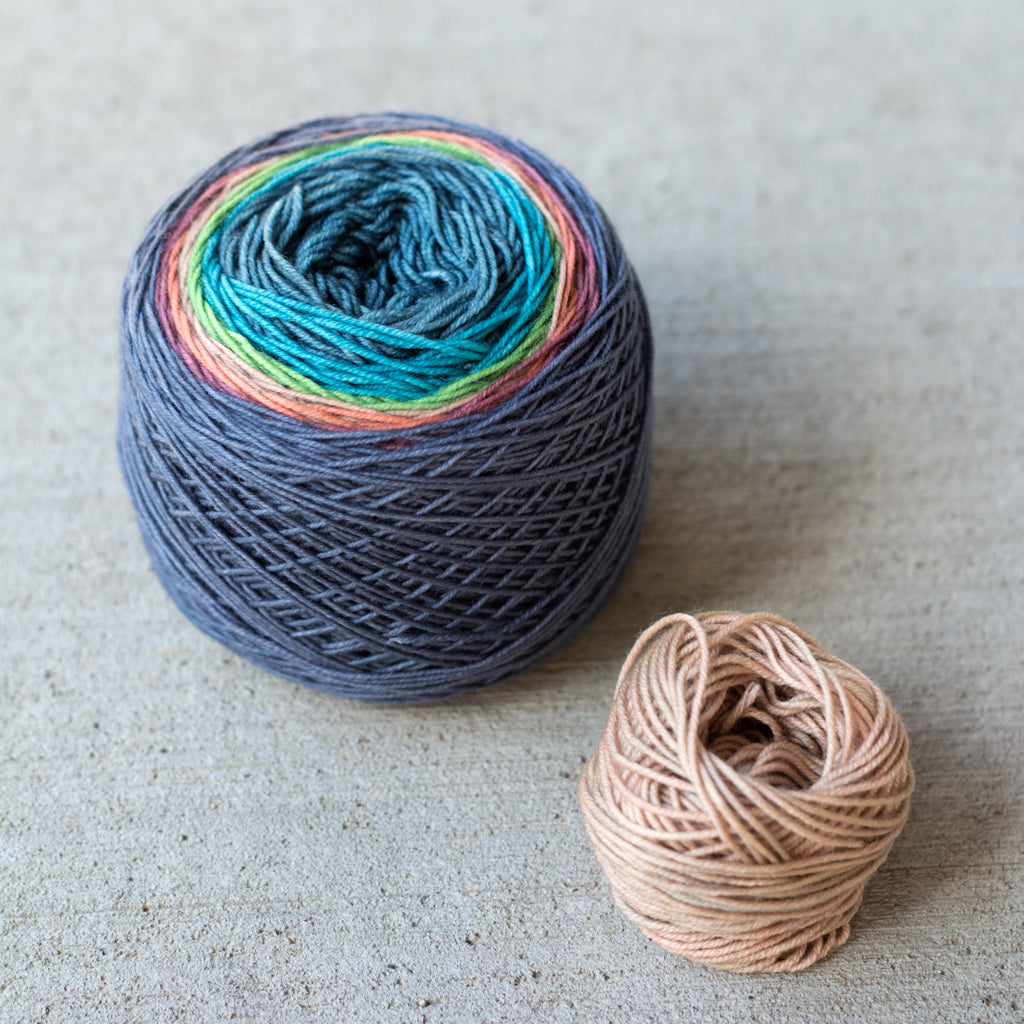 Shawl Yarn Specially dyed for top-down triangular shawls. Each stripe is the same width from beginning to end, with no ends to weave in. 100 g of fingering weight is enough for a small shawlette. 150 g gives a more generous size. If you want to maximize your yardage, choose our 4-Ply sock yarn.