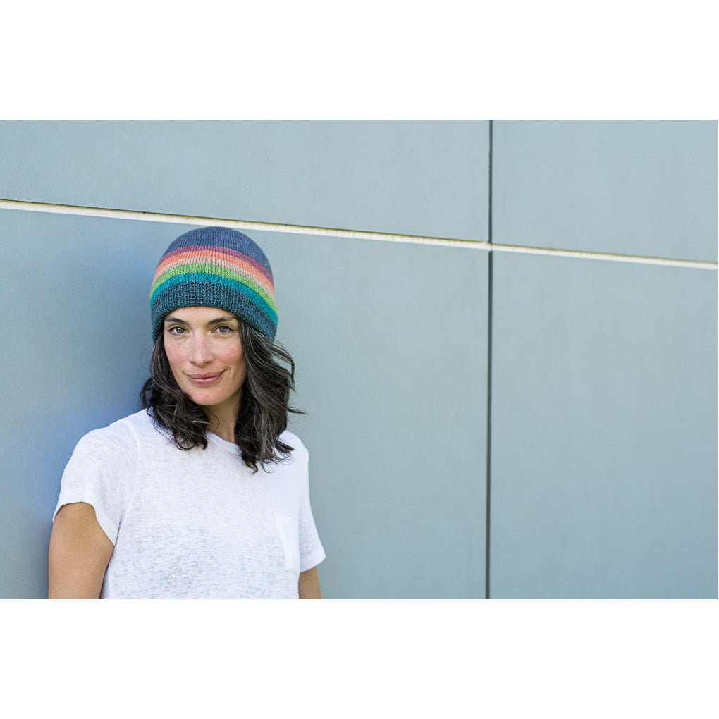 A single 115 g / 4 oz skein of this self-patterning yarn is all you need to make this clever, reversible hat.