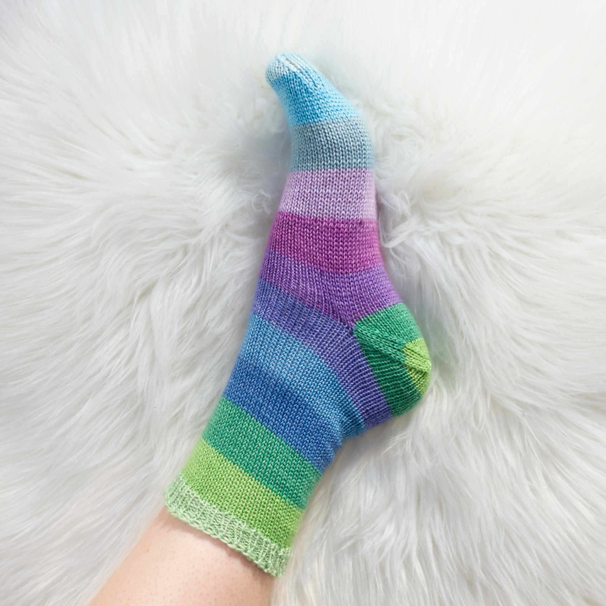 Round Trip "There and back" with two matching halves—perfect for projects like socks. One 100 g skein of fingering weight is enough for an average-size pair of women's socks. For longer or wider socks, choose the 150 g size.