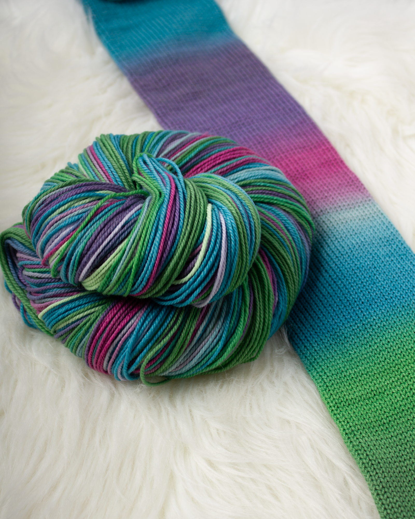 To honour that shifting beauty, I dyed this yarn as a soft, flowing gradient—the kind that invites you to just keep knitting.
