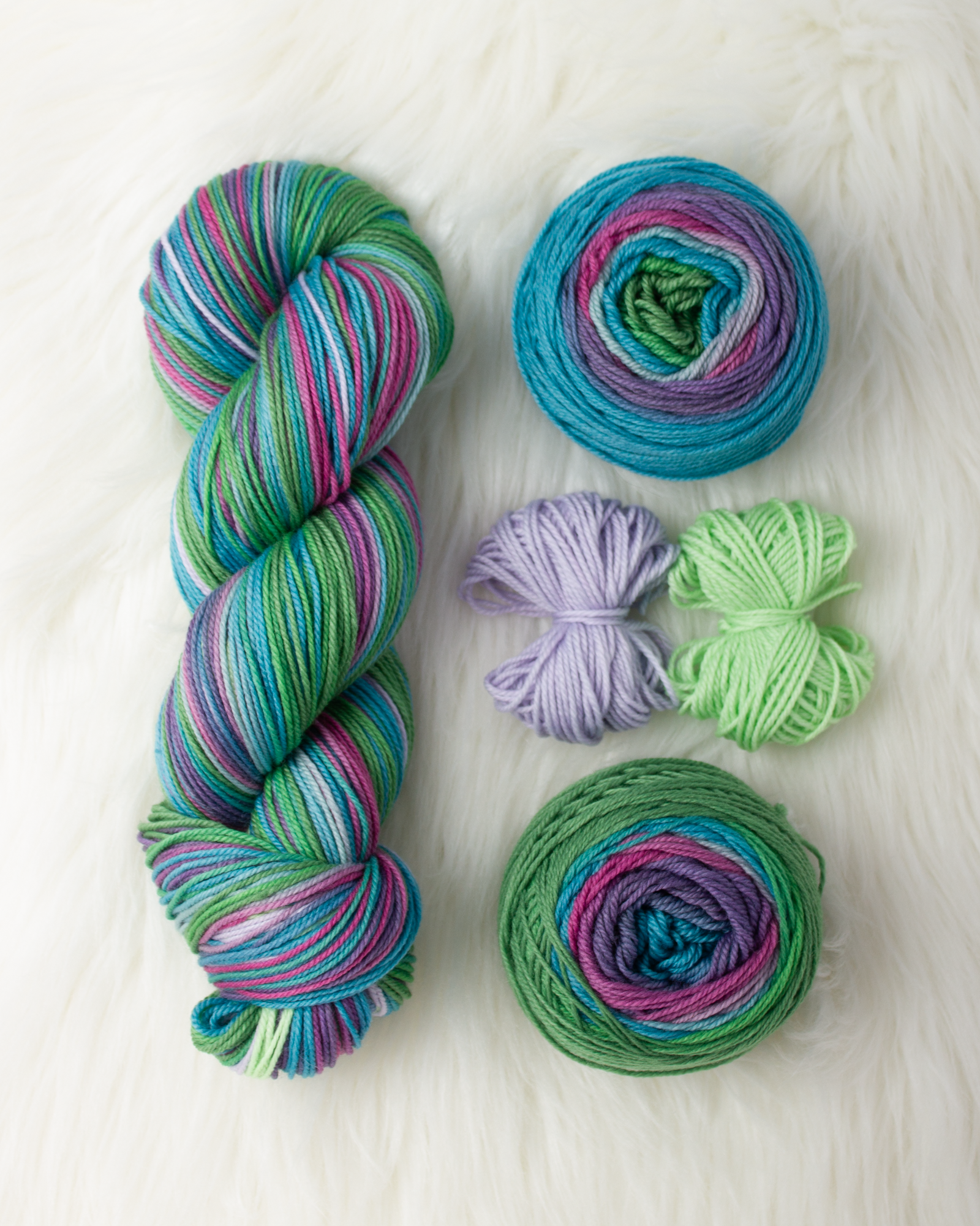 Everything you need is in one skein! As you wind the yarn you can divide it into four balls: