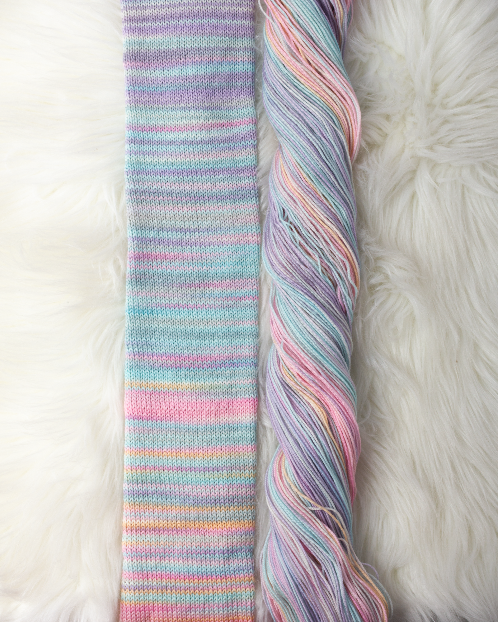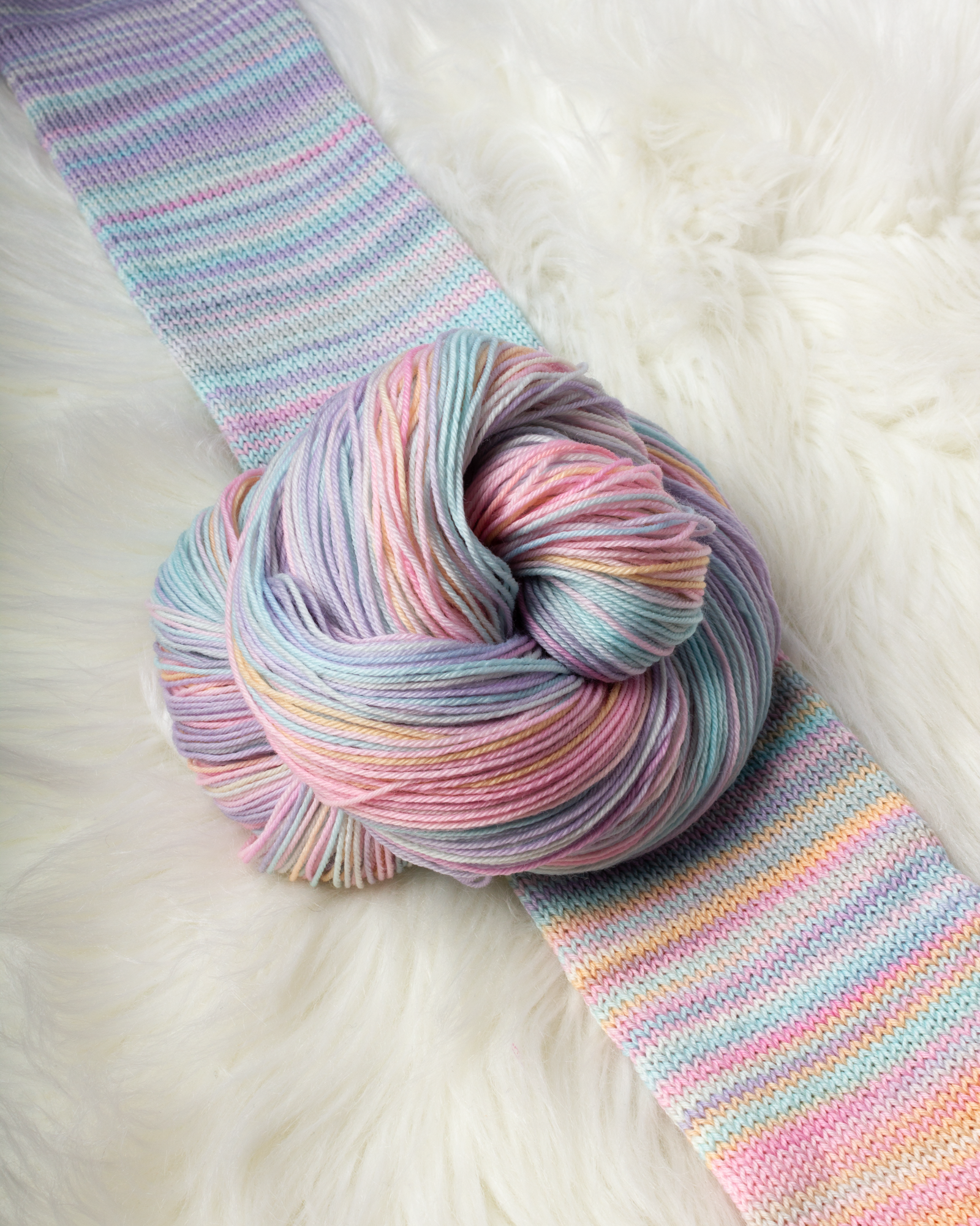 This Round Trip skein gives you two matching gradients, perfect for socks or other mirrored projects.